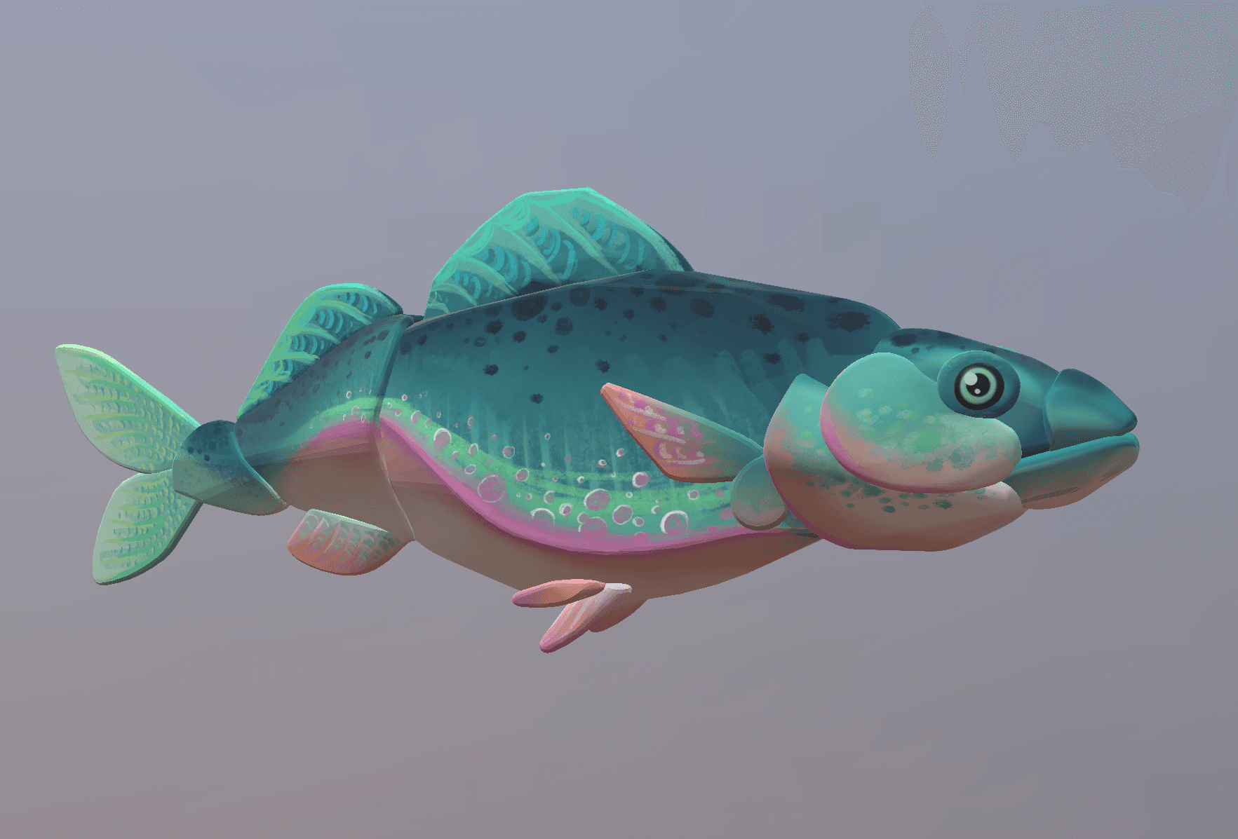 Fish exhibited at the 2024 UAL AR exhibition, created in blender, nomad sculpt and procreate.